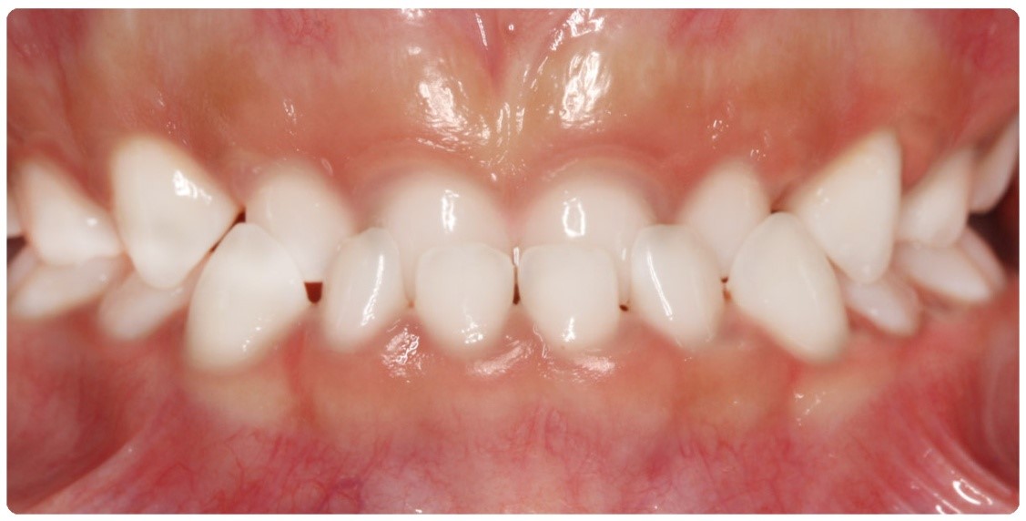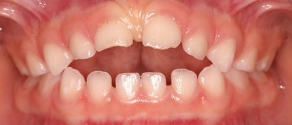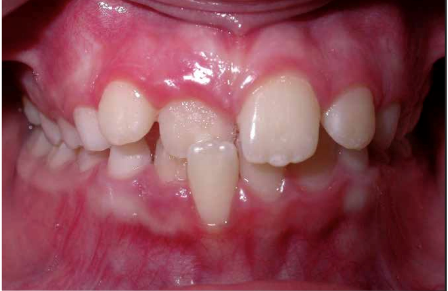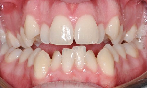 c)     Các răng cửa sữa thay không đúng quy luật gây rối loạn sự mọc răng bình thường của các răng cửa vĩnh viễn.
