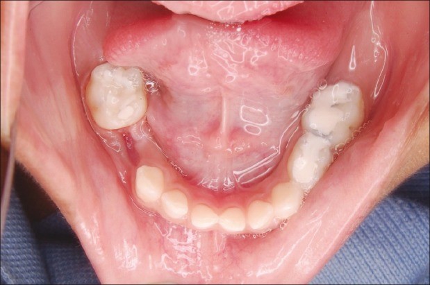 b)    Sự đóng khoảng do sự mất sớm các răng sữa. Khoảng bị mất trên cung hàm cần phải được hồi phục.
