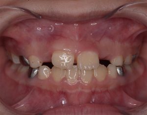- Răng vĩnh viễn chậm mọc: Một bên răng cửa đã mọc dài nhưng bên còn lại mãi không thấy “nhú” lên dù đã quá thời gian thay răng.