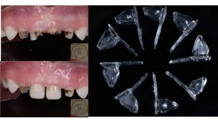 Đục lỗ cách 6-7 mm để lá đam chui vào viền lợi, có thể không cần chỉ tơ nha khoa. Nên đặt cách một răng làm chụp.