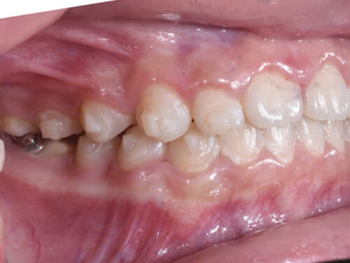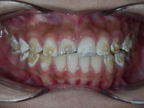 Hình 3: Tổn thương đốm trắng nặng hơn trên nhiều răng, xung quanh attachment