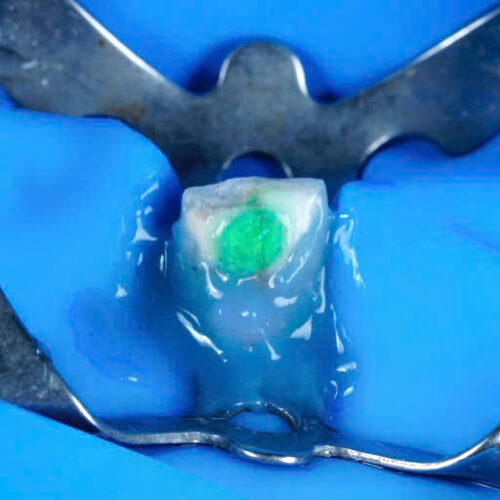 Sau đó tổn thương được cho nhựa xâm nhập trong 3 phút, chiếu đèn quang trùng hợp trong 40s. Lặp lại quá trình này một lần nữa và kết thúc với chiếu đèn 40s.