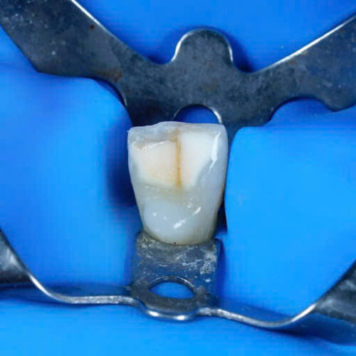 Bệnh nhân được đặt cách ly với đê cao su để tránh các dung dịch trong quá trình điều trị chảy vào sàn miệng và các răng bên cạnh