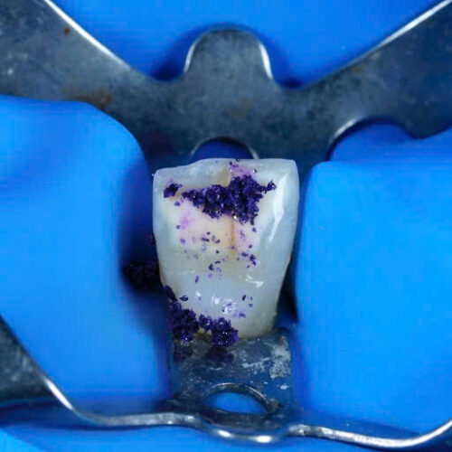 Sau khi bộc lộ tổn thương, đốm nâu được xử lí với NaOCl 5% trong 10 phút, có bơm rửa liên tục. Xen kẽ là quá trình vi mài mòn với cát nhôm Al2O3 29 micron.