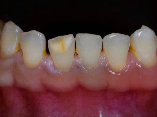 Sau đó bề mặt men bị lõm được phục hồi với composite bằng kỹ thuật đắp lớp trực tiếp.