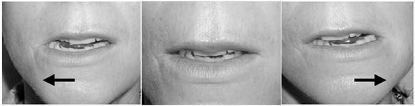 - Nhả răng nhẹ nhàng, đưa cằm sang phải không há lớn thêm, về lại vị trí nghỉ, đưa cằm sang trái.