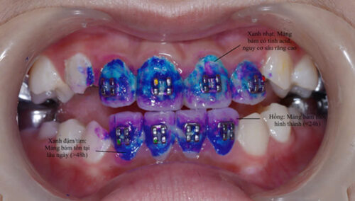 Hình 3: Sau khi nhuộm mảng bám sâu răng