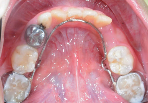 Có thể cần khôi phục khoảng cho răng hàm nhỏ bằng cách sử dụng phức hợp đai và khí cụ cố định hoặc cung lưỡi cùng với việc nhổ răng hàm sữa thứ hai để hỗ trợ cho răng hàm nhỏ thứ nhất mọc lên.